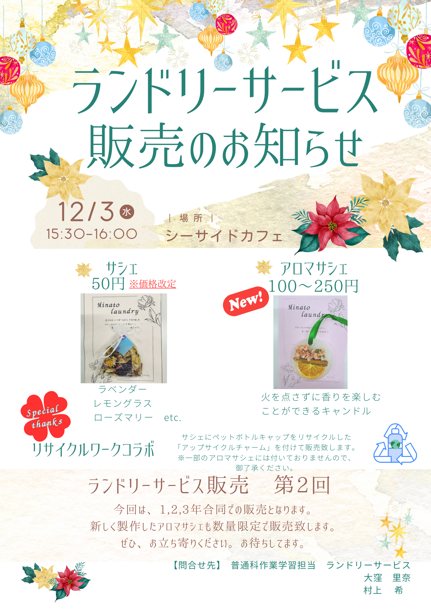 12月3日(水)普通科作業学習ランドリーサービスで販売を行います。